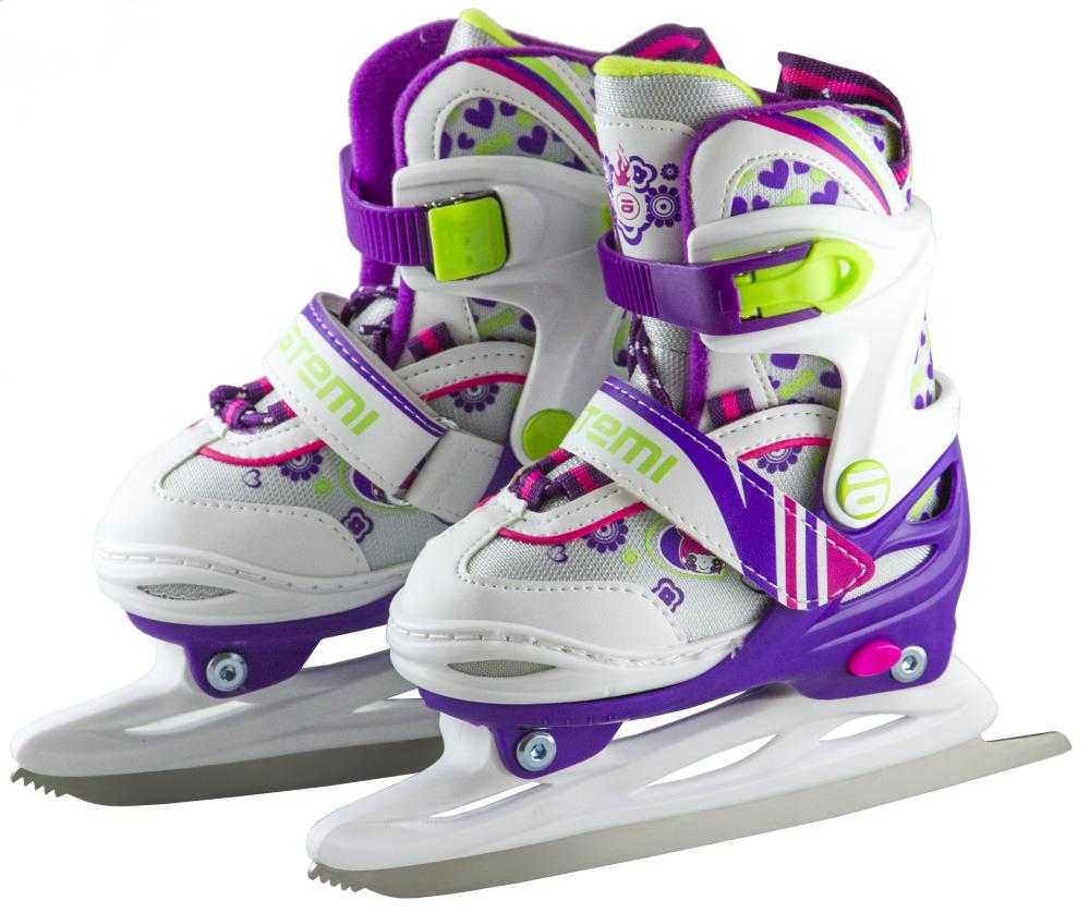Коньки детские раздвижные Atemi AKSK-17.01 (для девочек). Полумягкий ботинок из морозоустойчивых материалов (температурный режим до -25) и стелька EVA отлично держит тепло, что очень важно для детской ножки. Ботинок оснащен удобной системой раздвижки, позволяющей менять размер. Можно забыть о покупке новой пары коньков на несколько сезонов. Фигурное лезвие из нержавеющей стали на конце имеет зубчики для фигурного катания, а яркий дизайн, придется по душе самой юной моднице. Тройная система фиксации (клипса, липучка, шнуровка) надежно зафиксирует стопу.