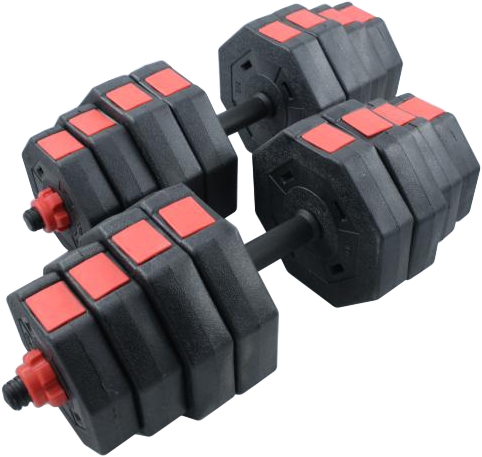 Материал: высокопрочный пластик, металлический стержень грифа, внутренний наполнитель дисков - цемент